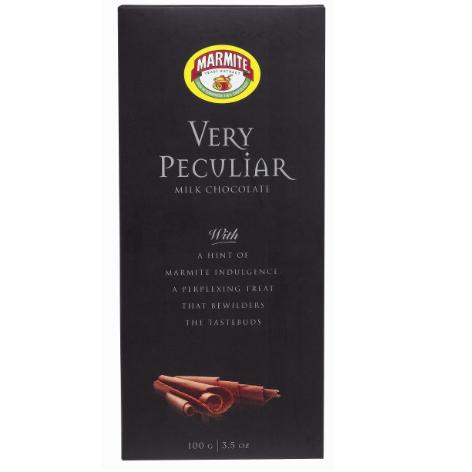 I’m a Marmite lover no doubt about it and over the years have been bought and enjoyed quite a few of the foodie Marmite spin-offs, from Champagne Infused Marmite for Valentine’s Day to lovely little mini Marmite cheeses – but I wasn’t expecting to receive two bars of Very Peculiar Milk Chocolate Infused with Marmite! It claims to be a ‘Perplexing Treat that Bewilders the taste buds’ and I don’t think there could actually be a better choice of words for this latest Marmite inspired invention…it’s very difficult to describe the experience. The chocolate bar has a Marmite aroma from the beginning which adds a strangeness before you even taste the chocolate, which is sweet and creamy with a savoury overtone – I instantly went in for a second mouthful, but then a Marmite after taste kicks in – truly peculiar, but recommended for Marmite fans.